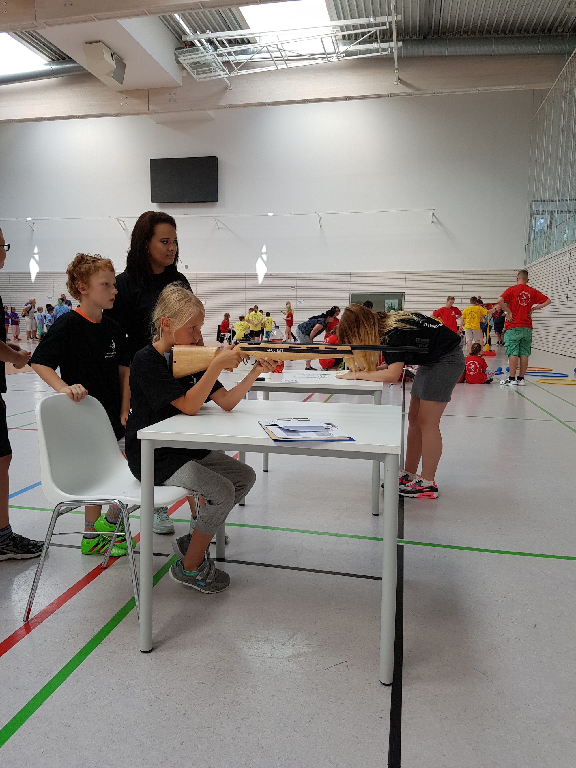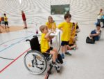 Am 21.06.2017 fand in der Riethsporthalle das 1. Inklusive Sportfest statt, an dem die Klasse 3a geschlossen teilnahm. Es erwartete die Teilnehmer ein Sportfest mit viel Spaß, Bewegung und Begegnungen. Neue Erfahrungen im Umgang mit anderen Kindern sowie mit sich selbst wurden gesammelt. Es stand ein bunter Tag mit gemeinsamen spielerischen Erlebnissen bevor. 15 Stationen waren zu absolvieren. Es gab unter anderem das Zielwerfen in einen Basketballkorb aus einem Rollstuhl, Bogenschießen, einen Rollstuhlparcour, Weitwerfen von Geschirrhandtüchern, Kartonwettstapeln, Blindzielwerfen und vieles mehr. Jedes Kind erhielt ein T-Shirt, eine Teilnehmermedaille sowie ein Mittagessen zur Stärkung. Getränke standen den ganzen Tag zur Verfügung und die Besten aus jeder Mannschaft wurden mit Pokalen ausgezeichnet. Es war ein rundherum gelungener Abschluss zum Schuljahresende.