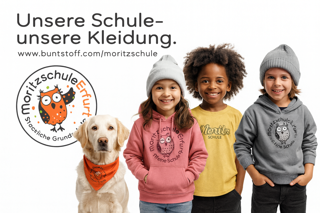 Die Erfurter buntstoff GmbH entwickelt gerade einen eigenen Shop für Schulkleidung unserer Moritzschüler. Die ersten Kinder-Shirts sind bereits online – ein Blick lohnt sich! Schauen Sie gern regelmäßig vorbei, denn das Sortiment wird Schritt für Schritt weiter wachsen.