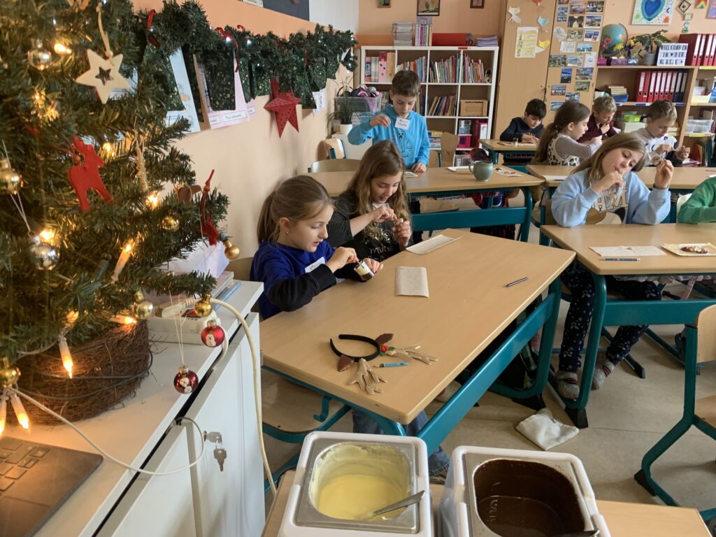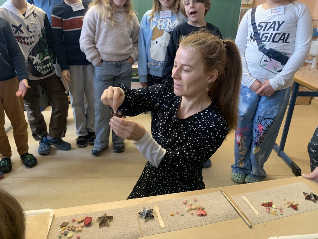 Frau Greim aus Egstedt kam mit viel Schokolade und zeigte der Klasse, wie man zauberhafte Pralinen kreiert. So beginnt die Adventszeit spaßig und lecker.