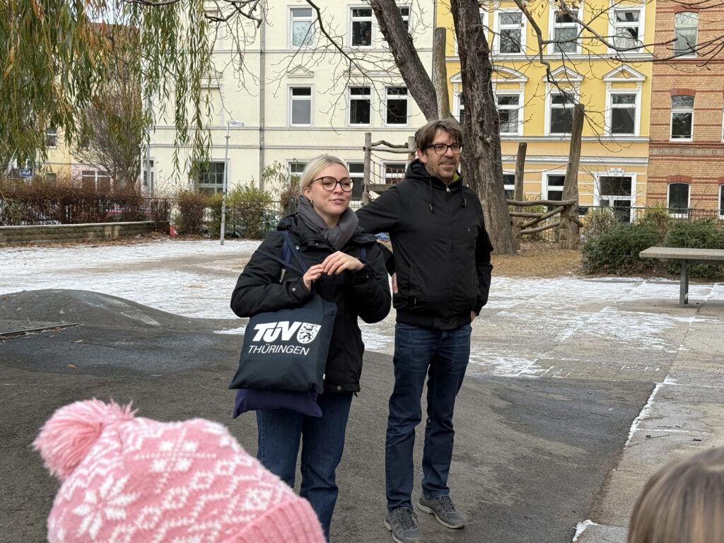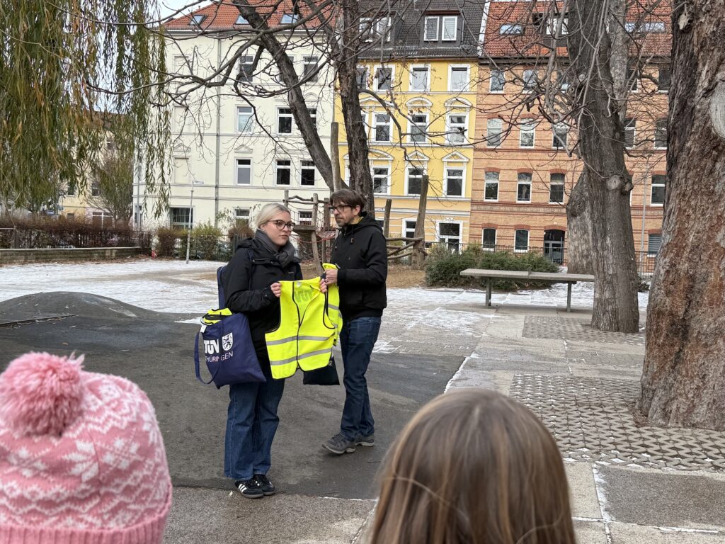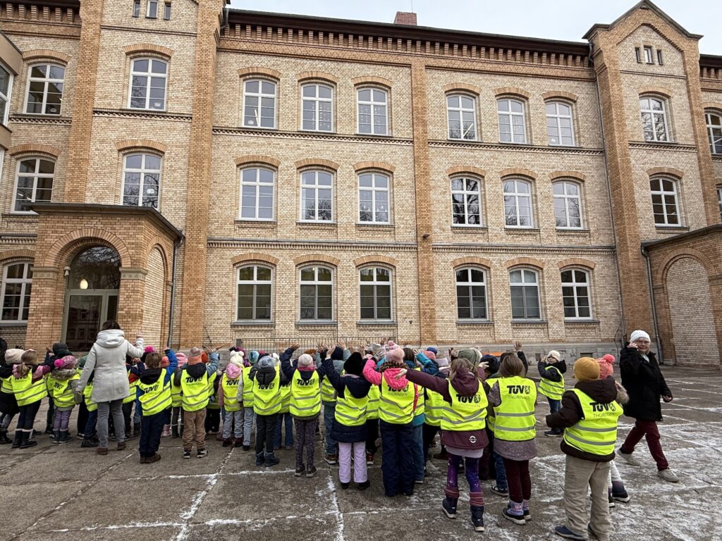Als kleines Highlight hatte der TÜV Thüringen (https://tuev-thueringen.de/blog/tuev-thueringen-stattet-erstklaessler-der-moritzschule-erfurt-mit-warnwesten-aus) für jeden Erstklässler eine eigene Warnweste dabei. Die Kinder wussten sofort, warum diese grade jetzt in dieser dunklen Jahreszeit so praktisch sind. Mit einem Applaus und einem kräftigen „Dankeschön“ verabschiedeten sich die Klassen von den freundlichen Besuchern.